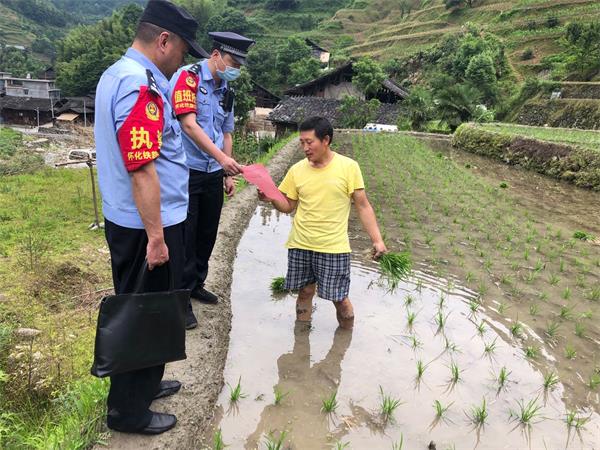 5月27日上午,为加强护路联防工作,确保高铁列车运行安全,怀化铁路公安处溆浦南站派出所民警深入田间地头,向沿线群众宣传爱车护路知识。
