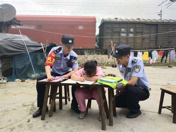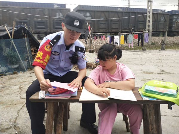 2020年6月1日,湖南怀化铁路公安处芷江西站派出所民警趁着学校刚放学,早早来到了居住在铁路边一户特殊的家庭里等候着。当就读四年级的女孩花花下了校车,一眼就看到站在瓦房木屋前铁警叔叔们脸上洋溢的笑容。