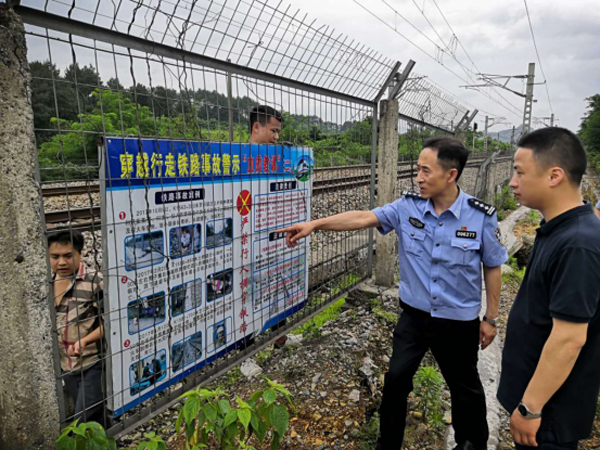 芷江西站派出所联合芷江县护铁办针对铁路安全宣传“重拳出击”。将铁路事故宣传警示牌安装在村庄人流密集的铁路沿线。看着宣传牌上“血的教训”,每一位路过的村民忍不住驻足观看,不禁对高速运行的火车望而生“畏”,再不敢轻易跨越翻越铁路。