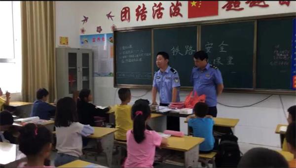 走校园开展爱车护路安全宣传。民警们结合“知路·爱路·护路”宣传教育月活动,联合沿线各市、县(区)政法、护路、教育等相关部门共举办宣传启动仪式24场,上法制教育课276堂,举办爱车护路宣传图片展126场,发放宣传资料5万余份,发放作业本3万余份,签订安全承诺书5600余份,签订安全协议7500份,受教育师生以及沿线群众共计10万余人,受到沿线师生广泛好评。