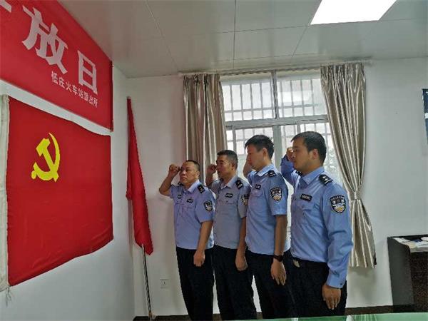 为纪念中国共产党建党99周年,激励广大党员民警增强“四个意识”、坚定“四个自信”、切实做到“对党忠诚,服务人民,执法公正,纪律严明”十六个字总要求,7月1日,怀化铁路公安处低庄站派出所组织开展庆“七一”主题活动。