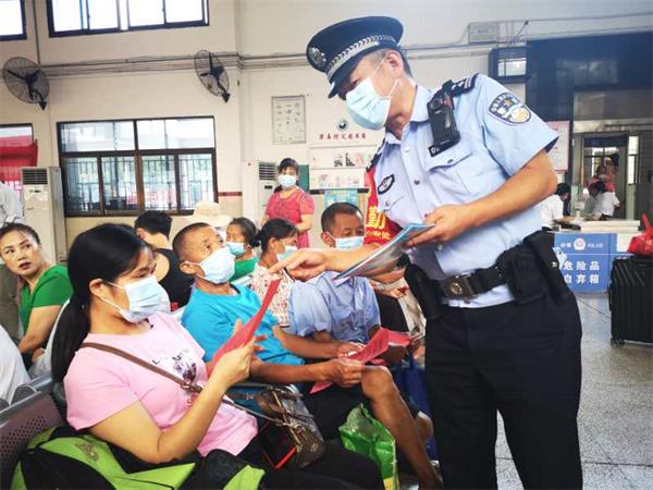 入夏以来,随着外出旅游的不断增多,靖州车站派出所针对夏季气候炎热,旅客在候车时容易疲倦,甚至打瞌睡而放松警惕,造成行李和贵重物品丢失和被盗的情况,及时组织了一支安全宣传小分队,深入车站候车室,面对面地向旅客进行防扒防骗宣传。