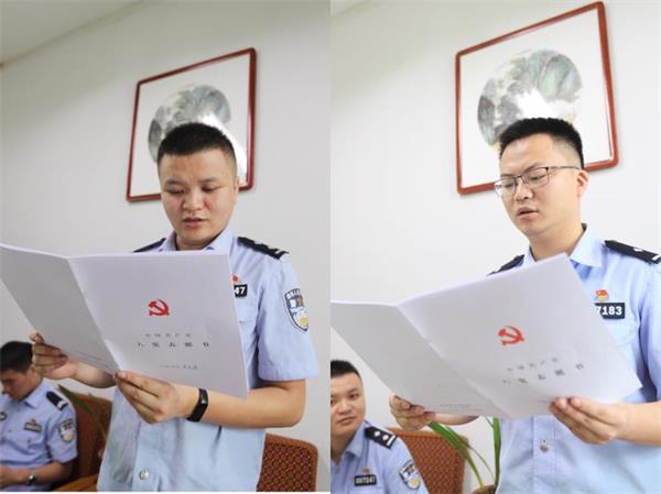 2.重温一次入党誓词。支部书记组织全体党员民警面对党旗,高举右手、紧握右拳,重温入党誓词,用高昂、奋进的宣誓表达对党的忠诚和热爱。通过强化党性教育,提醒党员民警牢记自己曾经许下的庄严承诺,推动党员民警不忘初心、牢记使命,以更加饱满的热情和高昂的斗志为党的事业和铁路公安工作奋斗奉献。