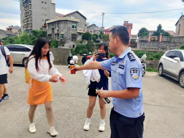 据悉,这名民警叫贺松,33岁,是怀化铁路公安处溆浦站派出所的民警,由于今天恰好休息,便主动来到高考考场外为学生们服务,为同学们送上考试用品和解暑的凉茶,用实际行动来助力高考。