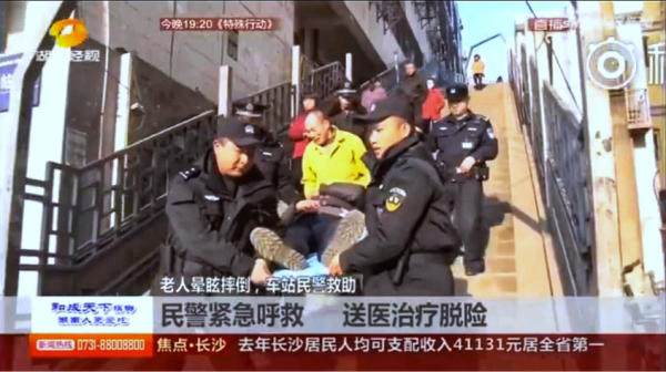 “我知道他的,小杨,可是个热心肠!”常年在衡阳站前广场跳舞的文大姐说,“2018年春节刚过,那天小杨和他们队长一起在衡阳站执勤,不巧一位老人失足从车站天桥上滚下来,头上脸上喷得都是血!小杨知道了,立即联系120,又冲进最近的药店,买了纱布,奔向天桥,摁住老人头上的伤,这才止住了血。救护车来了后,又和同事一起把老人抬上车送进医院。这事儿当时还上了湖南卫视呢!”