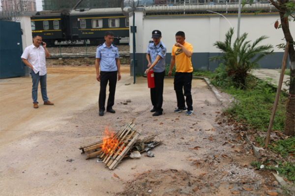 为了确保火情火警高效处理,民警还组织站区铁路工作人员开展了消防教育培训与火情火警演练。培训中民警手把手教,站区职工认认真真学,有效保证了消防设施设备的正确使用与联合救火的技术战法。