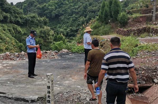 8月11日上午,怀化铁路公安处麻阳站派出所的民警与麻阳县板栗树乡的党委书记等领导在实地察看铁路边的一处安全隐患路段。