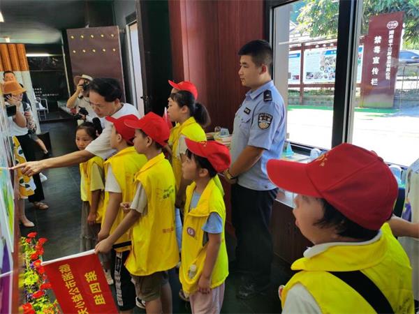 活动中,全国五一劳动奖章获得者李国武先生介绍了十三村禁毒教育基地情况。民警向小学生讲解了什么是毒品,毒品对个人、家庭及社会带来的危害,切实增强学生识毒、拒毒、防毒意识。活动期间,还组织学生开展禁毒签名。
