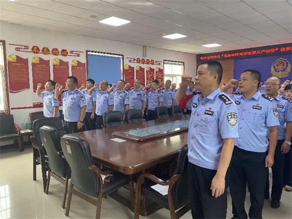 “我宣誓:我志愿成为中华人民共和国人民警察,献身于崇高的人民公安事业,坚决做到对党忠诚、服务人民、执法公正、纪律严明,矢志不渝做中国特色社会主义事业的建设者、捍卫者,为维护社会大局稳定、促进社会公平正义、保障人民安居乐业而努力奋斗!”这是长沙铁路公安处长沙南站派出所在开展“坚持政治建警全面从严治警”教育整顿期间举行的“做忠诚卫士”集中宣誓活动,铿锵有力的铮铮誓言响彻整个会议室。8月19日上午,该所所长肖重仨带领全体民警面对国旗庄严宣誓,表明该所扎实开展“坚持政治建警全面从严治警”教育整顿的信心和决心。