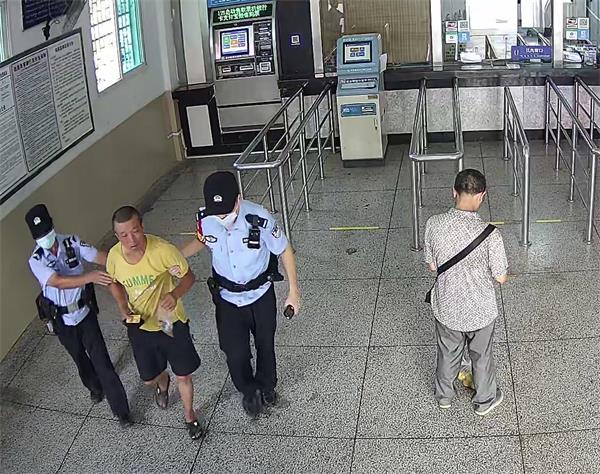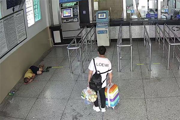 近日,一名醉酒男子睡在湖南省怀化市麻阳火车站售票厅内,被巡逻的广州铁路公安局怀化公安处民警及时发现并救助,最终联系其家人将他接回。