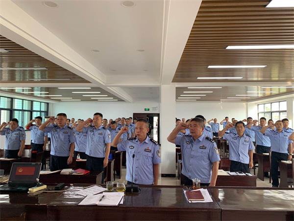为了增强教育整顿工作的影响力和辐射力,当天的动员会议还安排了一名大队领导和四名民警分别代表三个层次的方阵上台作了宣誓发言。民警们在台上激情地表示,坚持政治建警的号角已吹响,从严治警的战鼓已擂响,我们将不比困难比担当,不辱使命,坚决做新时代党和人民放心的公安战士。