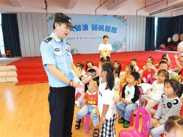 9月9日,在幼儿园开学的第一天,怀化铁路公安处吉首站派出所,组织民警走进铁路沿线管内的吉首市幼儿园,为孩子们上了一堂生动的铁路安全教育课。