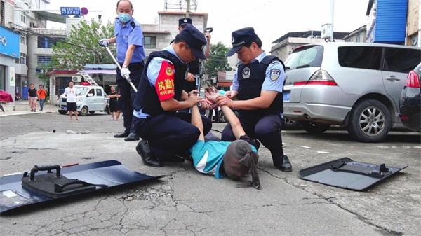 随后,慈利县公安局巡特警大队、观音桥派出所、县中医医院等支援力量按照应急指挥部指令,在5分钟内赶到事发现场进行处置,快速完成了现场封控、疏散群众等前期步骤,各组成员按照演练预案各司其职、密切配合,通过与“暴徒”谈判对话无效后,立即实施抓捕计划,运用战术战法联合将"暴徒"制服,紧接着快速完成现场爆炸物搜查、"伤员"救治、秩序恢复等环节,做到了处置依法依规、干净利落。