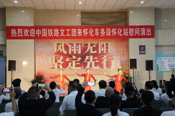 9月19日下午,中国铁路文工团到怀化站为基层一线铁路职工及公安民警送上“风雨无阻,坚定前行”文艺慰问演出,怀化车务段职工和铁路民警共计120多人观看了这场精彩的节目。