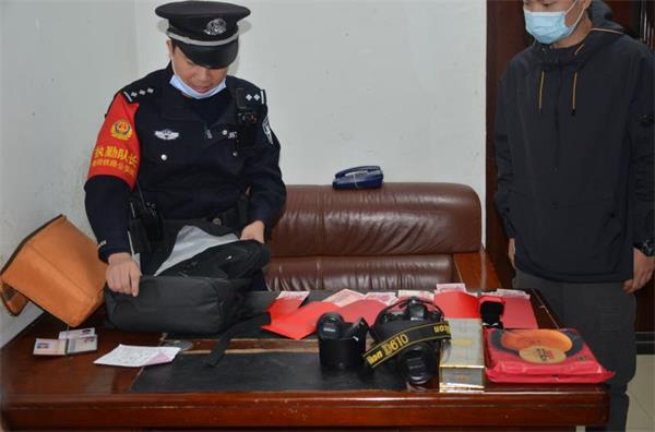 在铁路职工的见证下,民警当即对该背包进行开包检查,发现包内有近5万元现金、相机一台、镜头一个,钻戒一对,及相关证件若干。“我立即用车站广播寻找失主,同时,利用包内证件相关信息寻找失主联系方式。”民警景清朝说。