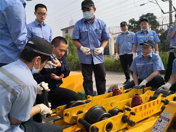 其中,悬轮装置救援应急处置演练中应急救援队员优先由长沙城际动车运用所各工班长、副工长、队长、乘务指导担当,提前掌握悬轮装置操作使用方法,迅速、高效完成救援现场任务。