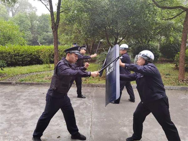 坚持实战引领,强化警务技能。新任领导班子及内勤,结合我所实际,制定了科学系统的实战练兵训练计划,有针对性地组织开展日常训练,全力提升民警的精神风貌和警务实战能力。所领导安排每日早点名时由分管副所长田喜亮带队,对民警进行授课和操练。具体操练科目有带队入场、整齐报数、立正跨立、脱帽戴帽夹帽、齐步行进与立定等队列动作,以及系统讲解单警装备、各项警械使用,开展徒手防卫、搜身带离、现场急救等技能训练科目。通过警务技能训练,提升参训民警掌握警务技能的基础知识,提升其在应对突发事件时的处置能力。