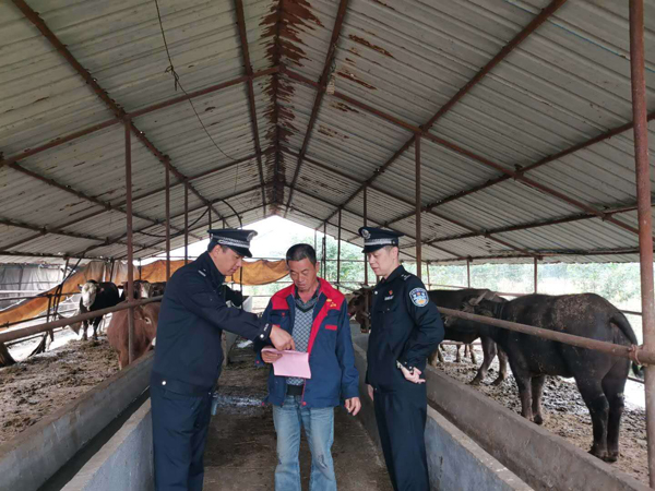 近日,怀化铁路公安处怀化东站派出所针对沿线耕牛户多的现状,组织民警对沿线耕牛户主进行入户安全宣传。