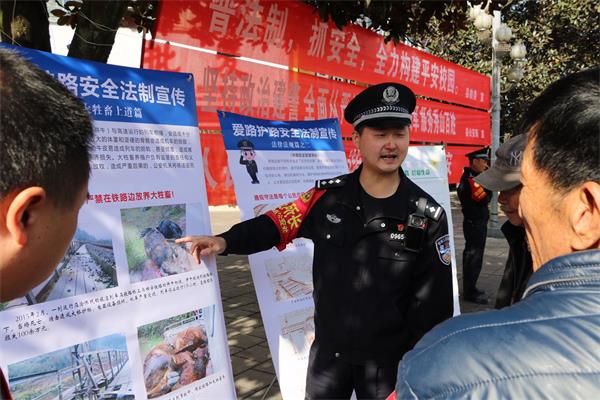 “大家看看这些惨痛的事例,这些都是居民不注意自身安全,违反法规上铁路线路,最终失去了生命。”11月9日上午,怀化铁路公安处松桃站派出所民警指着宣传板上的事例,向群众介绍着。