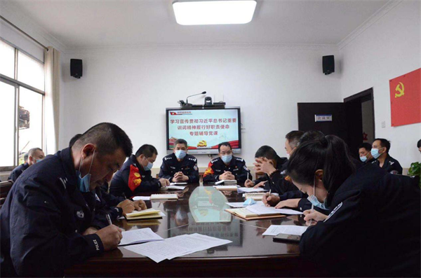 衡阳所支部将深入学习贯彻习近平总书记重要训词精神列入政治练兵重要内容,提前制定详实学习计划,合理安排时间,协调工学矛盾,利用交班会、专题党课、学习强国队组长视频会议等形式,采取集中学习、党小组学习、自我学习等方式,领导班子带头学,干部民警积极跟学,原原本本、逐字逐句深入学习训词精神,组织研讨交流,撰写心得体会,做到全警参与,人人到位,学懂、悟透、入脑、入心。通过一系列学习活动,切实将全警的思想和行动统一到习近平总书记重要讲话精神上来,不断增强“四个意识”、坚定“四个自信”、做到“两个维护”。
