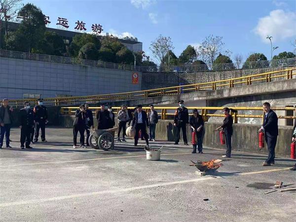整个演练过程主要分为两个部分。一、进行模拟演习,在出站口公交站台附近设置一个着火点。根据具体工作岗位将人员划分为灭火组、救援组、警戒组和疏散组,演练开始前详细说明应当注意的事项和整体流程,强调“掩住口鼻,防止吸入烟雾”的重要。模拟演习中,各组人员有序展开工作,对外围拉起警戒带,疏散人群,对着火点实施灭火,救治伤员,放下防火卷帘,防止火势蔓延。二、演示灭火器的正确使用方法,讲解防范小常识。恰当的使用灭火器,可以有效遏制火势的扩大,因此正确使用灭火器就很是重要。在防火演练中,由消防队员亲自演示指导灭火器的使用,“占上风方向,对准火焰根部”朗朗上口的口令,让参与人员都熟练掌握了使用方法。