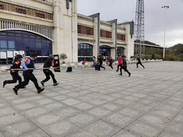 依照全警实战大练兵部署要求,为进一步提升民警及车站职工的反恐防暴意识和应急处突能力,11月19日上午,怀化铁路公安处芷江站派出所会同芷江县公安局高铁站路地联合整治办公室、芷江县公安局城西派出所、芷江车站在芷江站站前广场开展反恐防暴练兵。