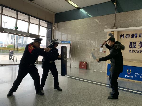 为提升全体干部民警应急处突能力,切实让全警实战大练兵落地生根,为旅客群众生命财产和铁路生产输运安全保驾护航。12月16日,怀化铁路公安处张家界站派出所根据所部工作需要,采取“不定时间、不打招呼”的方式,开展发生刀斧砍杀紧急警情应急处置演练。