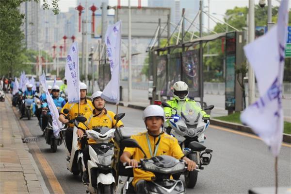 在活动现场,摩托车、电动自行车驾驶人代表的爱人们将安全头盔作为“520”表白日的礼物,叮嘱爱人出行注意自身安全。活动主办单位向经过现场未佩戴头盔的摩托车、电动自行车骑乘人员赠送安全头盔和保险,共向骑行市民赠送头盔和保险各500份,获得参与市民的广泛好评。最后,由几十名外卖小哥组成的骑游车队在交警的引领下巡游打卡长沙市繁华地段掀起了活动高潮,外卖小哥们以佩戴头盔巡游的方式向广大骑乘人员宣传佩戴头盔的重要性,呼吁骑乘电动自行车、摩托车要自觉佩戴头盔。