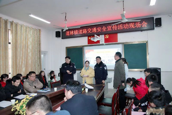 2020年1月2日14点30分,受道林镇政府邀请,宁乡市公安局交通警察大队安宣办联合花明楼交警中队在宁乡市道林镇中心小学开展了以“根治顽瘴痼疾,共建平安宁乡”为主题的交通安全知识宣教活动。参与活动的有道林镇城管队、交管站、基地学校师生、各中小学校长、幼儿园园长及驻村辅警等100余人,活动由道林镇张文宏副镇长主持。