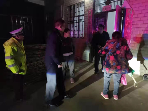 当晚6:30,桂阳交警二中队中队长刘柏文带领三名辅警在辖区桂嘉路方元镇加油站路段巡逻时,借着闪烁警灯的余光,发现道路右侧一位走路颤颤巍巍的老人正在马路上艰难行走,不时还有疾行的货车驶过,卷起的气流吹得老人东倒西歪,情况非常危险。见此情形,刘队惊出了冷汗,性急的他立即指挥警车靠右急停,跳下车疾跑向老人。刚想批评几句,老人却拉着刘队的衣袖,说:“同志,我不晓得回了!”。