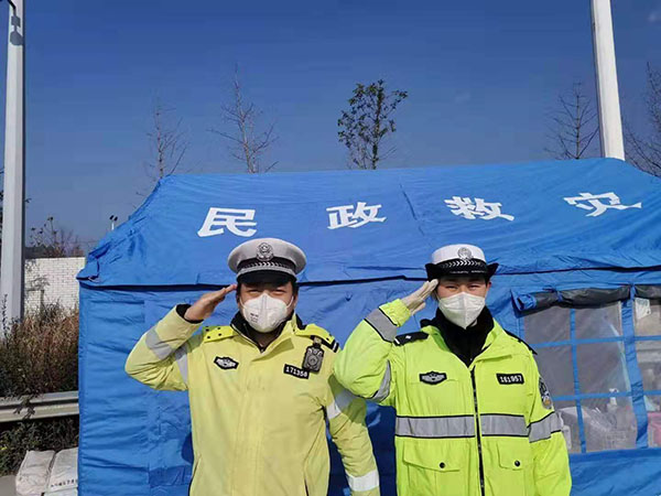 湘西花垣地处湘黔渝三省交界,包茂、张花高速在此交汇而,车流集中,新型冠状病防输入、防输出、防扩散压力特别大。花垣县公安局交警大队民警杨琳钒、高警局湘西支队保靖大队民警宋世杰为夫妻,两人从1月23日起,一直在各自的岗位上值守,和战友们一起在执勤卡点排查疫情可疑车辆,劝返湖北籍车辆,因为轮流值守,很少碰面。