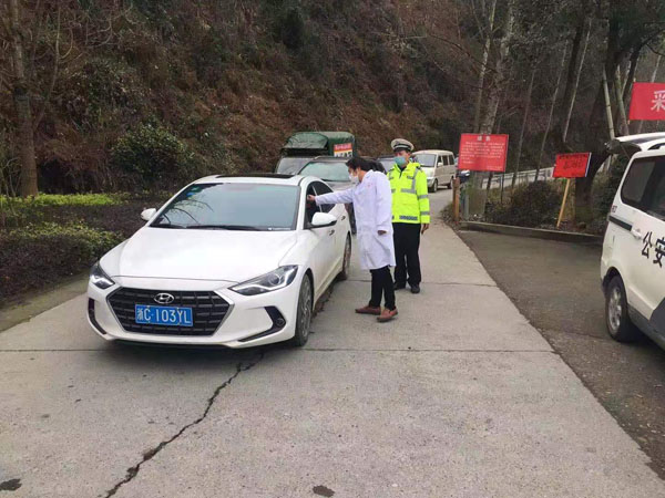 余致勤口中的“任务”,除了保障春运期间道路有序通行,还增添了一项新内容——在辖区设卡执勤点协助医护人员做好入城乡车辆上的人员体温检测。自1月24日启动防疫情检查执勤卡点以来,他累计在路面执勤达156个小时,期间余致勤的脚因过敏又痒又肿。