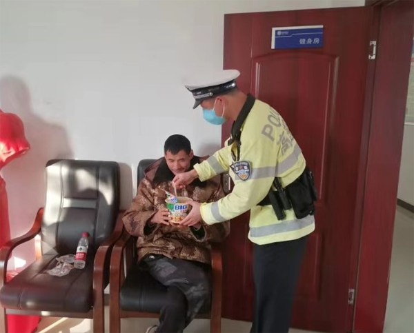 2月6日上午,省高警局衡阳支队衡阳西大队民警在巡逻时发现一名流浪汉。当天气温很低,且一直下着雨,民警将他先带回队部。因担心男子身体状况,民警细致的对其做了体温测量和消毒措施。这名流浪汉没有口罩,只用一块毛巾遮住口鼻,民警先为饿着肚子的他送上了热腾腾的饭菜,还赠予了用于执勤的新口罩。随后,民警将他送到衡阳市救助站。隔离疫情不隔离爱,温暖永远都在…