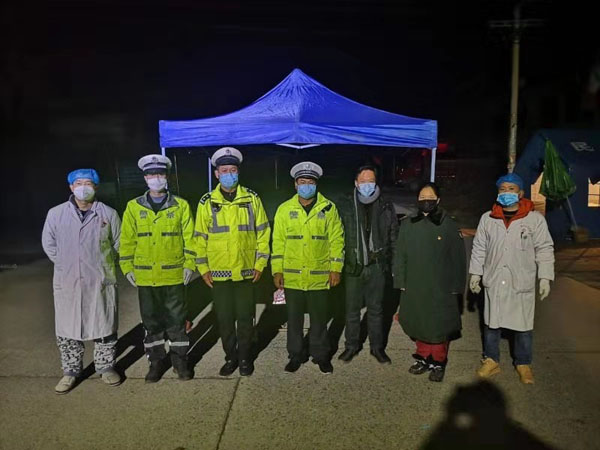 1月27日,农历初三,周振迎来到离花桥近30公里的将军庙防控点值勤,下午4时30分,他正带队值勤并宣传新冠肺炎防护常识时,一位70多岁的老爷爷因交通管制一下找不到回家的车辆,心急如焚。周振迎获知后,一边为其戴上口罩宣讲做好自我防护外,并驾车将老爷爷送到离执勤点10多公里开外的豹泉村,其家人十分感激。2月8日,元宵节晚上,为了让在执勤服务点上民辅警好好值守,周振迎将家人送到中队的元宵带到点上,与战友们共享了既紧张又快乐的元宵之夜。故事虽然没有硝烟,没有炮火场上那么惊人,看起很平凡。但其实里面透露出千千万万公安民警、辅警在战疫场上不畏艰险,敢于担当,勇往直前,无私奉献的崇高精神,这不仅是公安队伍所要求的,也是人民群众所需要的。