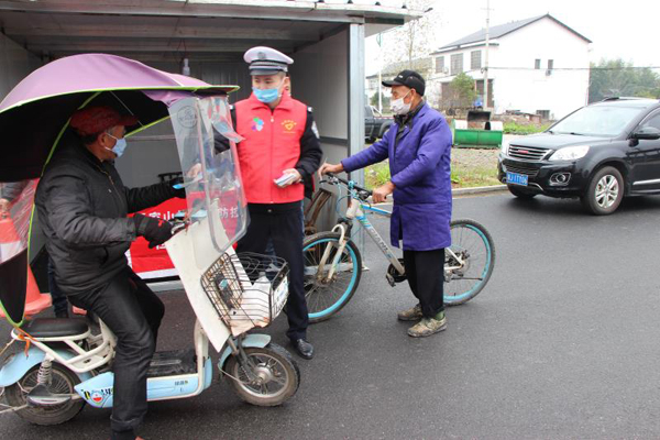 2月24日上午9点,大队志愿者在桃花源安置小区、桃花源同仁安置小区、黄土坡马路市场等地,发放交通问题顽瘴痼疾宣传手册和疫情防控宣传资料,把疫情防控宣传和不文明的驾驶行为宣传教育,送到群众耳边,引导广大群众积极配合桃花源镇人民政府的疫情防控工作,号召广大人民群众,在疫情防控的关键时期,做到不信谣、不传谣,戴口罩、勤洗手、不聚会、不赌博、不串门、经常在自家量体温,同时自觉抵制农村电动车野蛮驾驶、酒驾、醉驾等严重违法行为,切实增强群众的疫情防护意识和交通安全意识。