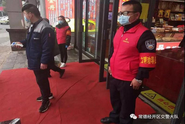 2月27日,常德经开区公安交警大队组织志愿者在辖区万象超市开展疫情防控志愿服务活动,引导群众自觉服从管理、助力超市复工后的疫情防控,维护公共秩序。