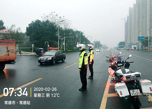 为保障人民群众生命健康和安全,为服务一方经济发展需求,常德交警坚守一线,坚决打赢疫情防控阻击战,坚决保障复工复产的交通运输“畅通线”。