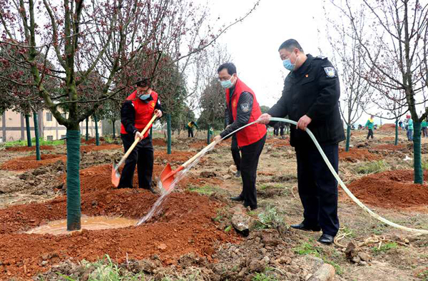 植树活动现场,大队教导员张帆介绍,此次义务植树活动,大队民警辅警用自己的实际行动践行着党的群众路线,既凝聚了警心、联系了民心、丰富警营文化生活,也为建设绿色常德、美丽常德贡献了一份力量。