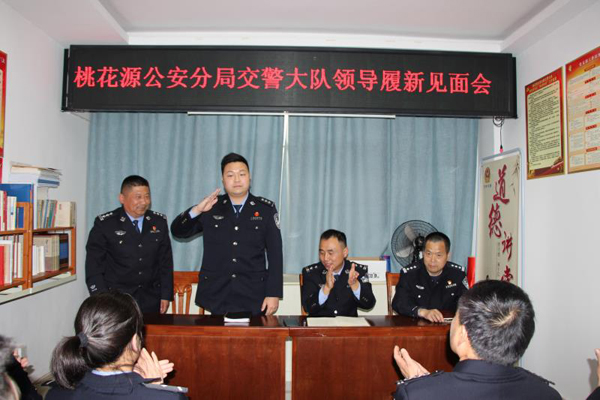 3月26日下午,常德桃花源公安分局交警大队召开新任大队长李红君、新任教导员熊立均履新见面会。桃花源公安分局政委童志敏出席会议,大队其他班子成员及全体民警、辅警参会,会议由大队副大队长张文武主持。