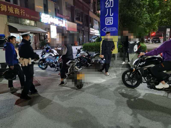 当晚,查获的“鬼火”摩托车被交警依法强制扣留,涉事未成年人得到教训,低头承认无证驾驶、非法改装、超速飙车等一系列违法行为既扰人清静又危害自己和他人生命财产安全,保证不再犯错。