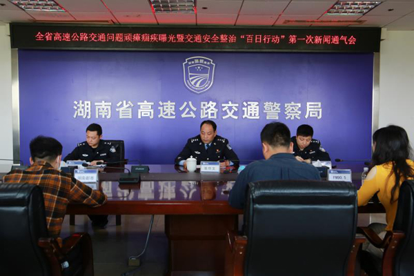 4月16日,湖南省高警局召开“全省高速公路交通问题顽瘴痼疾曝光暨高速公路交通安全整治‘百日行动’”第一次新闻通气会,曝光了自2019年10月以来,在湖南高速公路上客车超员违法累计2次以上的企业;通报了自4月13日交警总队部署开展高速公路交通安全整治‘百日行动’以来,查处的部分重点车辆违法情况及典型案例;并针对近期高速公路交通流量持续攀升的情况开展安全行车提示。