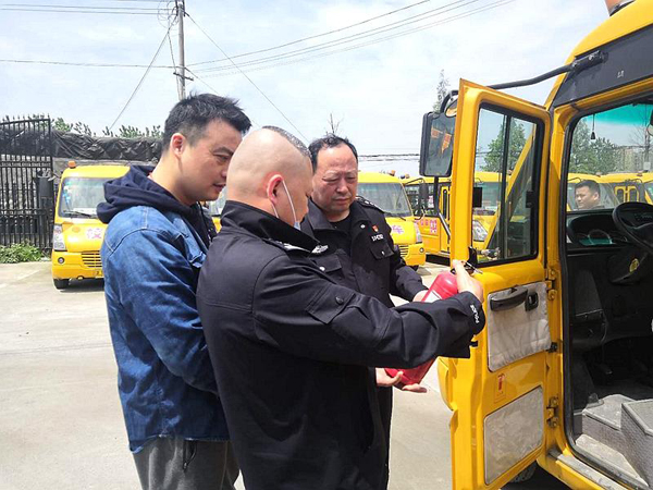 随后,民警对该公司所属校车进行逐一检查,重点查验车辆外观、安全带、灭火器、刹车、安全锤、医药箱等安全设备,仔细核对灭火器是否在检验周期以内、校车许可资质、驾驶员是否持绿色健康码及资质是否齐全、车辆运行时间及行驶路线等相关情况。经查验,校车所有安全设备已按要求配齐。