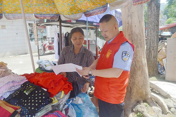 上午9点,大队志愿者在社区工作人员的带领下前往新一村菜市场,鉴于该地段交通、治安环境较为复杂,大队志愿者分为两组开展志愿服务活动。一组深入阳光幼儿园内,与学校负责人进行沟通交流,了解校园日常安全防护情况,结合幼儿生理和心理的特点,详细生动地上了一堂交通安全知识课,并发放了交通安全知识宣传资料;另一组沿着新一村菜市场及周边住户进行巡逻,通过实地观察及走访,细心排查社区特殊人群,登记造册录入智慧平安平台。同时,询问调查周边群众健康码注册情况,对还未注册的人员督促其进行扫码注册。