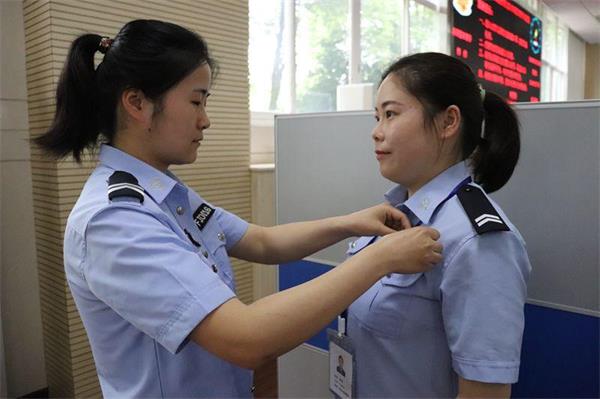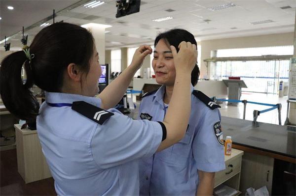 业务大厅作为为民服务的前沿阵地,姑娘们深知自己代表的是交警的形象,服务的是广大群众,是零距离展示公安形象的重要岗位。 每天上班前十分钟,她们都会把警服细细地整理,带好工作牌,面带微笑、谈吐亲和,以最佳的精神面貌迎接前来办事的每一位群众,让他们真实感受车管服务的规范和温馨。