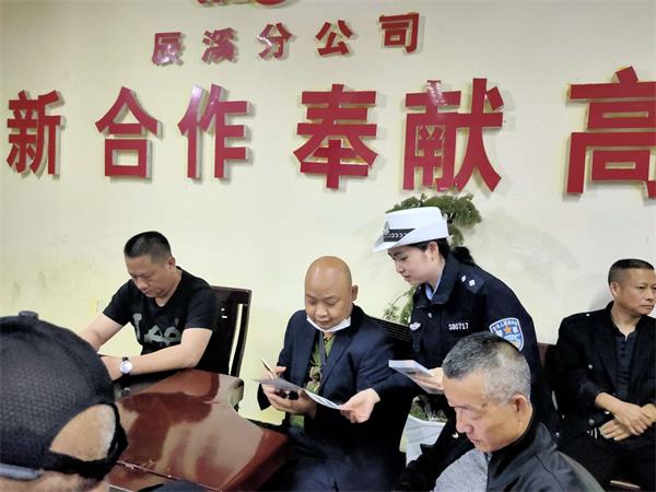 为提升广大驾驶人安全防护意识和防护水平,降低交通参与过程中的各类风险,有效预防道路交通事故,5月21日晚,辰溪交警组织宣传小分队走进辖区怀运集团辰溪分公司为客运驾驶人开展“一盔一带、安全常在”主题宣传活动。