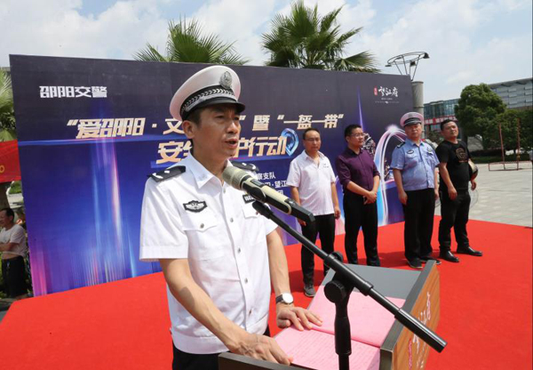 市公安局交警支队副支队长邓峰,交警支队宣传科、交管科,以及城区大祥、双清、北塔交警大队负责人和宣传民警、辅警参加此次活动。