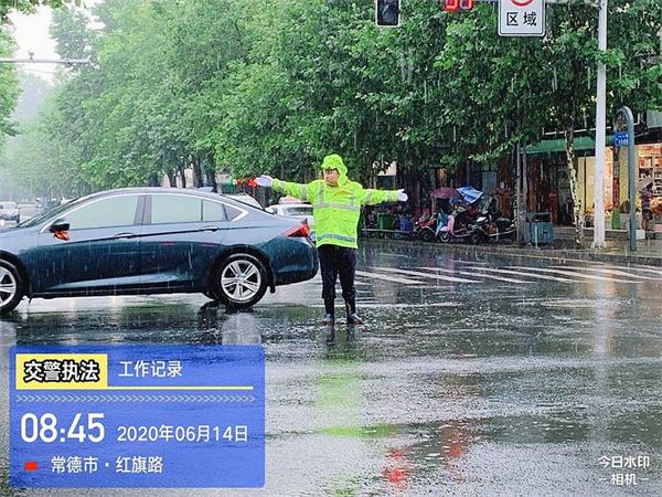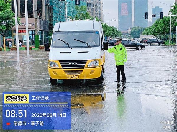 6月14日早晨,全市普降暴雨,极端天气导致各主干道积水严重,给广大机动车驾驶员和行人出行带来了极大不便。雨情就是警情,为了保障恶劣天气下道路交通安全、有序、畅通,常德交警直属二大队快速反应、积极应对,启动恶劣天气紧急预案,组织警力在雨中坚守一线,为人民群众的出行撑起“安全伞”。