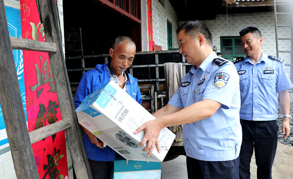 在当地村支两委负责人的陪同下,党员民警来到农村困难党员刘中云和帮扶点户刘建国家中,为他们送上了粽子、电风扇等生活慰问物资,祝福他们“七一”、端午节日快乐。随后,党员民警来到乡镇企业茶厂详细了解他们在党和政府帮助下如何应对疫情,走出困境,为农村经济发展注入活力的情况。