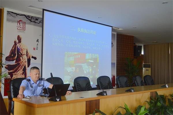 为进一步贯彻落实全警实战大练兵,推进执勤执法规范化建设,提高民警的道路交通事故处理能力。6月18日,常德交警直属二大队召开“全警大练兵”暨道路执勤执法工作规范讲座。本次讲座,由大队指定教官——副大队长吕国荣同志为全体民警、辅警授课。