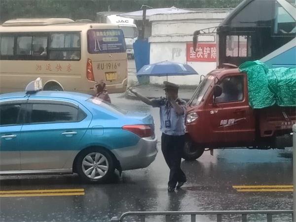 截止早上8点,因雨势过大,已造成辖区部分道路受到不同程度积水,周边傍山路段发生落石、漫水等现象,严重影响广大驾驶员的安全出行。面对突发险情,吉首市公安局交通大队以雨为令,闻雨而动,迅速启动应急预案,积极采取固定执勤和巡逻执勤相结合的方式,加大路面巡查力度,在重点时段、重点路段增派警力和警车,尤其加强对学生上下学的过往车辆进行分流和疏导。路面执勤交警除了在暴雨中指挥交通以外,还竭尽所能地联合公路管理等部门清理落石路障,对市健身坡电力桥路段摆放禁行标志标牌,提醒过往车辆禁行。雨越下越大,越下越重,即使全身被冰冷的雨水浇湿,也丝毫不慌地继续指挥车辆有序通行,将雨水的重力化作自身的动力,甚至站在积水中以身试水深,为过往车辆提供人体参照,成为和狂风骤雨对抗着的人。此外,大队通过双微平台及时发布雨天路况信息及临时交通管制信息,全力确保恶劣天气下市区道路的安全、畅通。